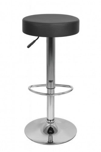 Стул барный черный круглый без спинки с регулировкой высоты (металлическое круглое основание, сиденье черное из искусственной кожи)